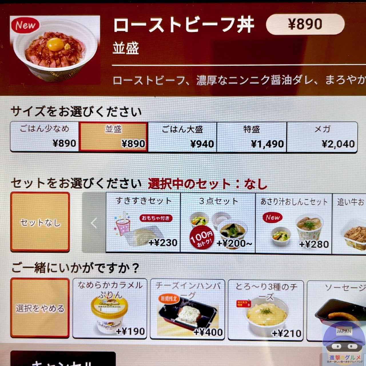 価格は、並盛890円、ごはん大盛り940円、特盛1490円、メガ2040円です。