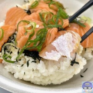 脂がのったサーモンをごはんと一緒に頬張り、至福の味わいを口いっぱいに堪能できます。