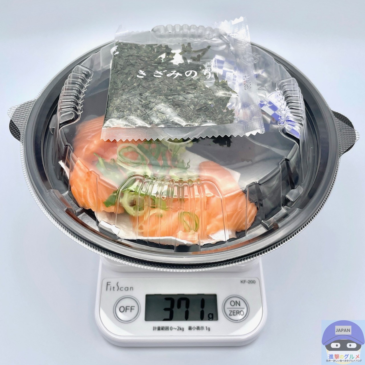 重さをはかると、容器を含めて371gでした。