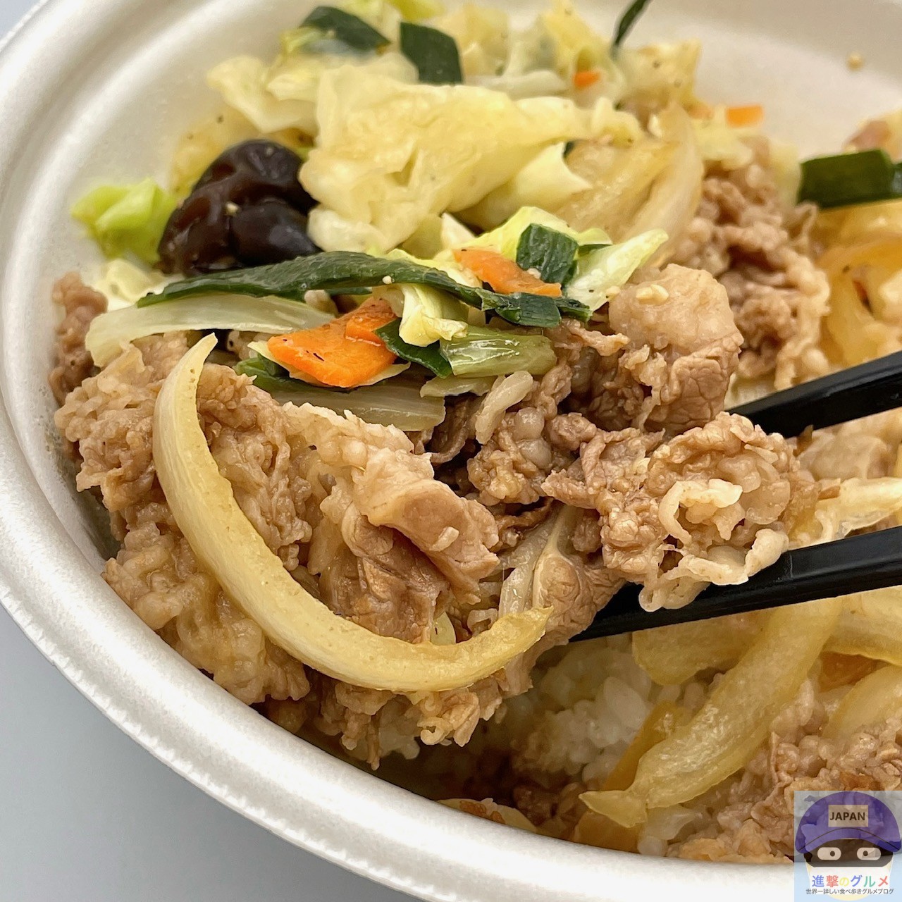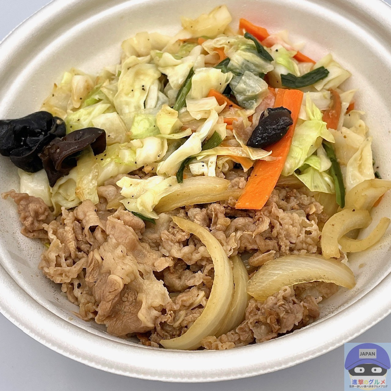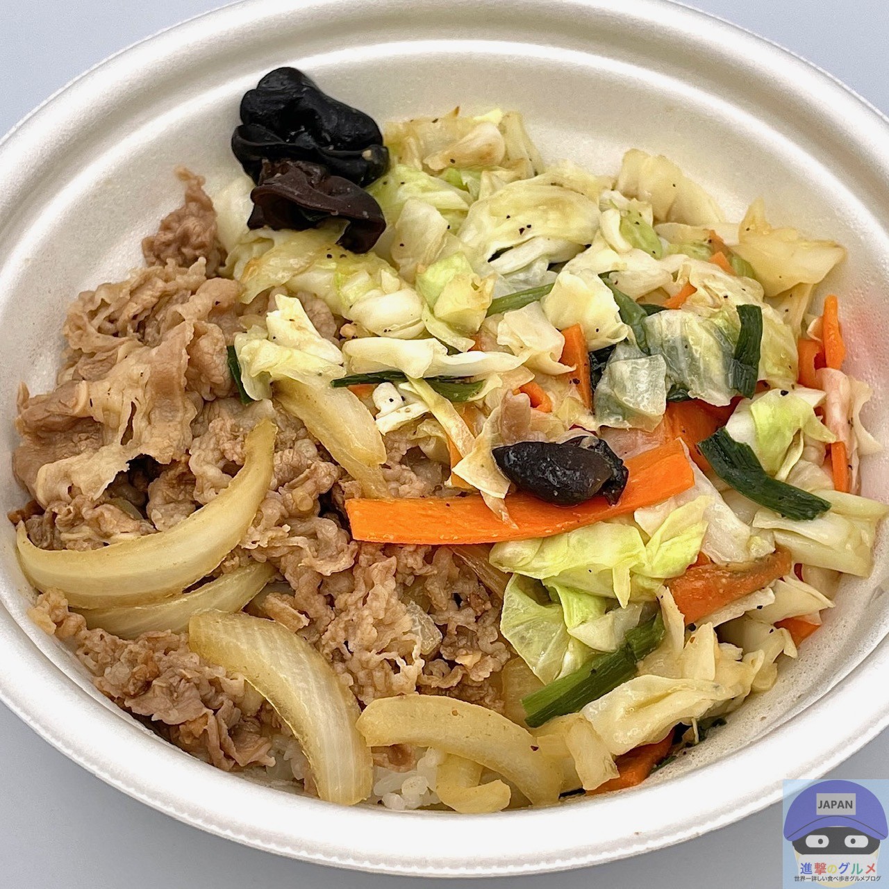 程よくやわらかい牛肉としんなりシャキッと玉ねぎで馴染みの味わいの牛丼に、野菜炒め風で食べごたえが増します。