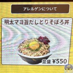 「明太マヨ旨だしとりそぼろ丼・ごはん大盛り(600円)」