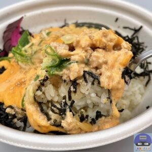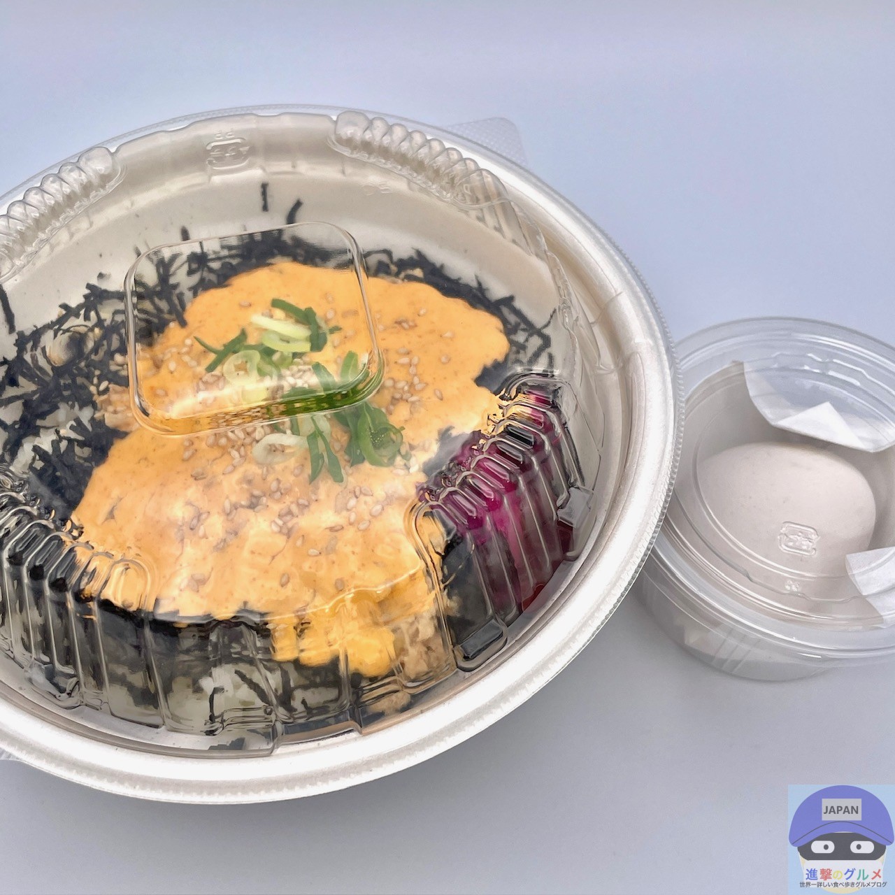 今回は、定番メニュー「明太マヨ旨だしとりそぼろ丼・ごはん大盛り(600円)」をテイクアウトしました。