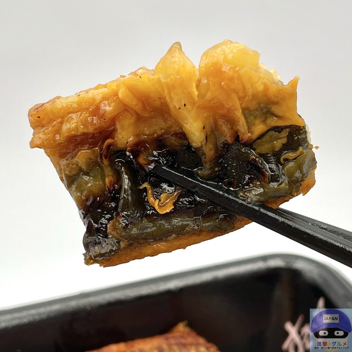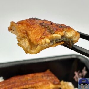 少しふっくらやわらかく、やや小骨のざらつきを感じる身質、うなぎの香ばしい味わいと甘めのタレの旨みで安定の美味しさです。