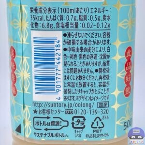内容量は500ml、カロリーは35kcal(100ml当たり)です。
