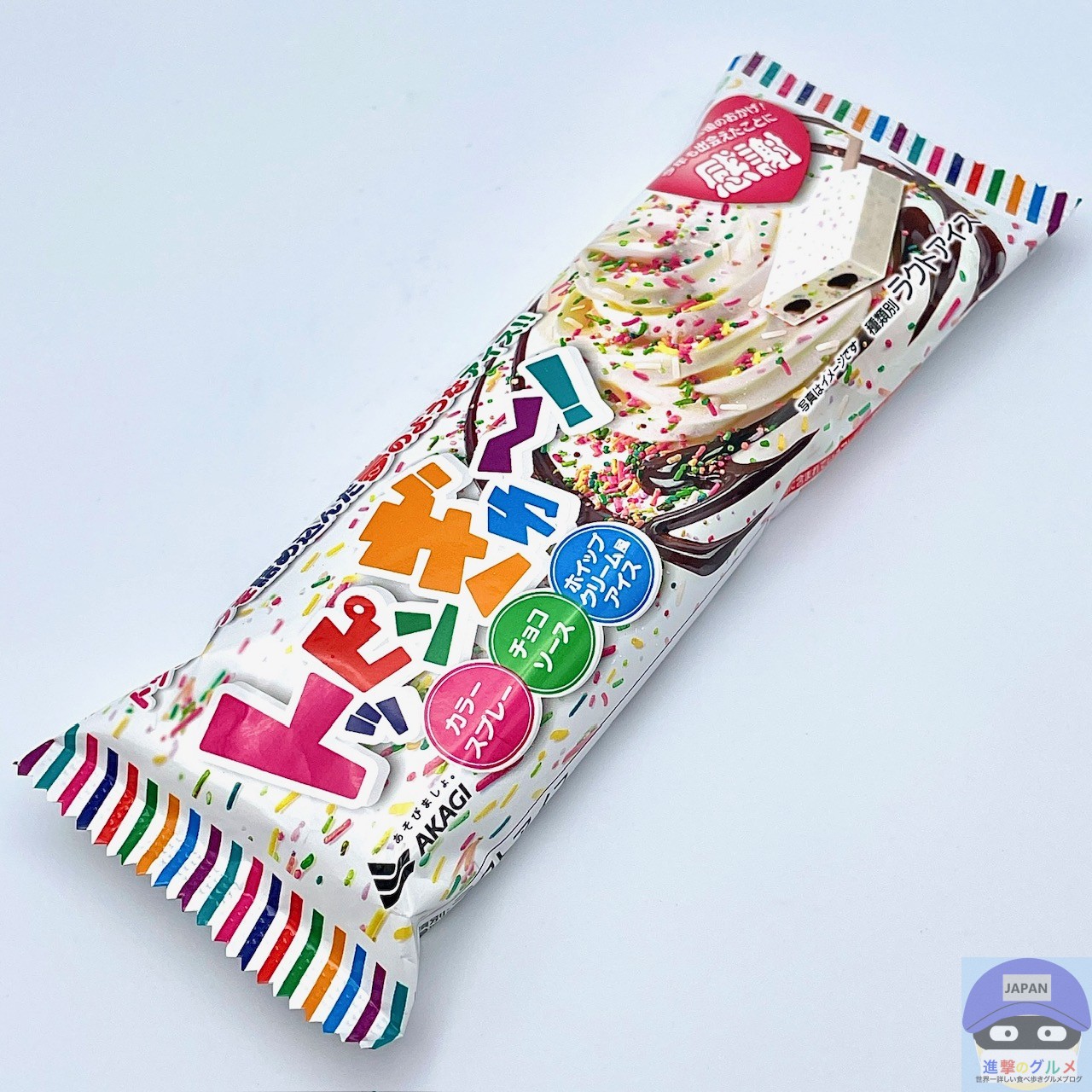 子どもの頃、多くの人が抱いた「トッピングをたくさん食べてみたい」という夢を実現し、「カラースプレー」「チョコソース」「ホイップクリーム風アイス」の3種をぎゅ~っと1本に詰め込んだアイスバーです。