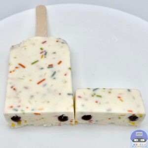 ホイップクリーム風アイスにカラースプレーをたっぷり混ぜ込んでいます。