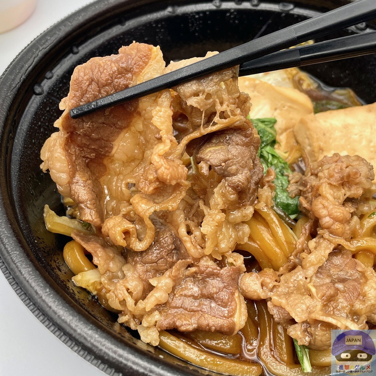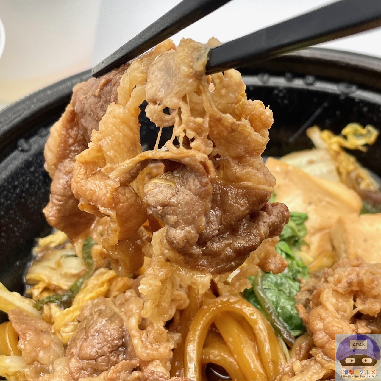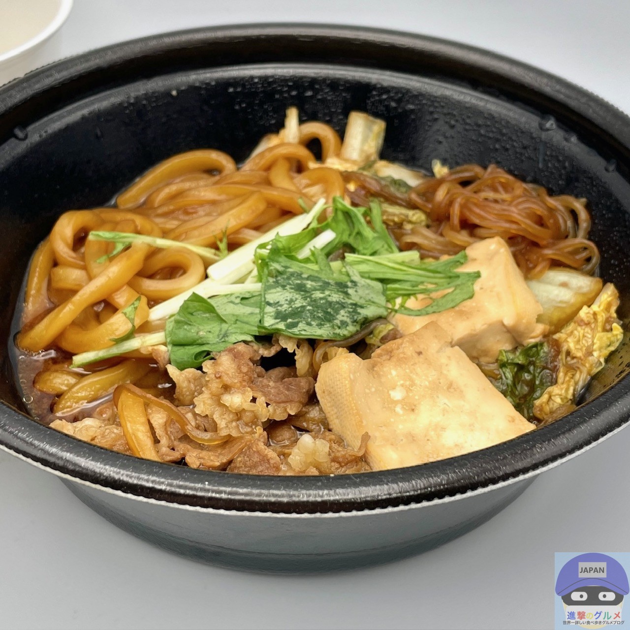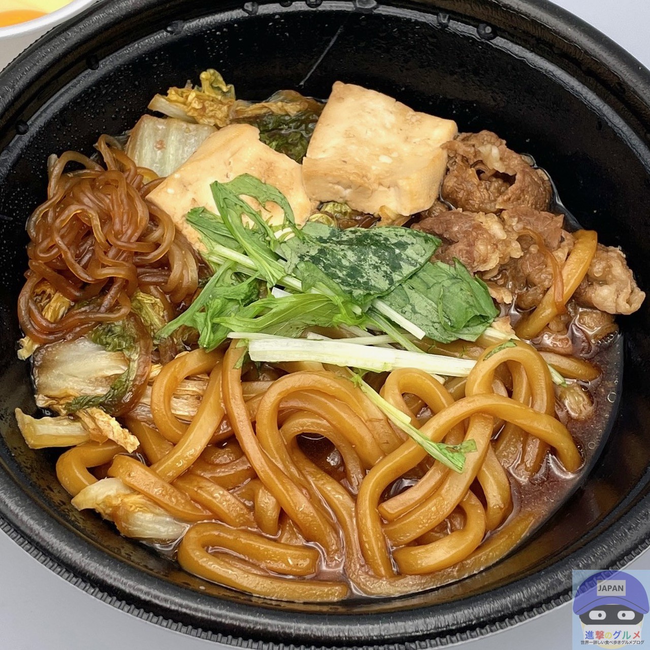 具材は、牛肉、白菜、しらたき、豆腐、うどんなどが入っています。