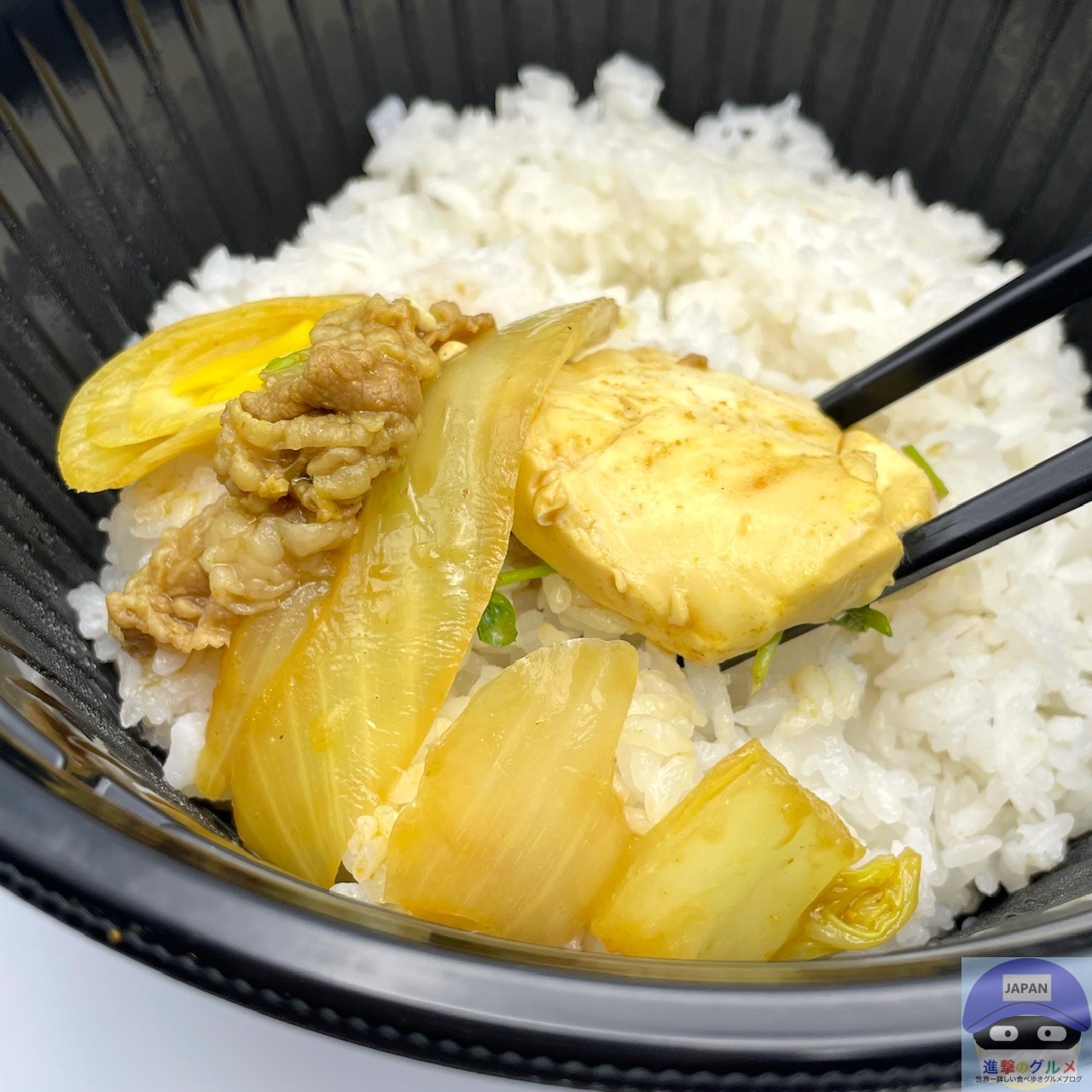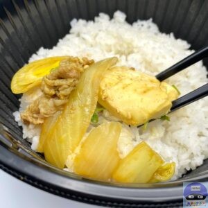 薄めでやや噛みごたえのある牛肉の旨みに、カレーソースのスパイス感、和風だしの旨み、甘口と中辛の間くらいの辛味が食欲を刺激します。