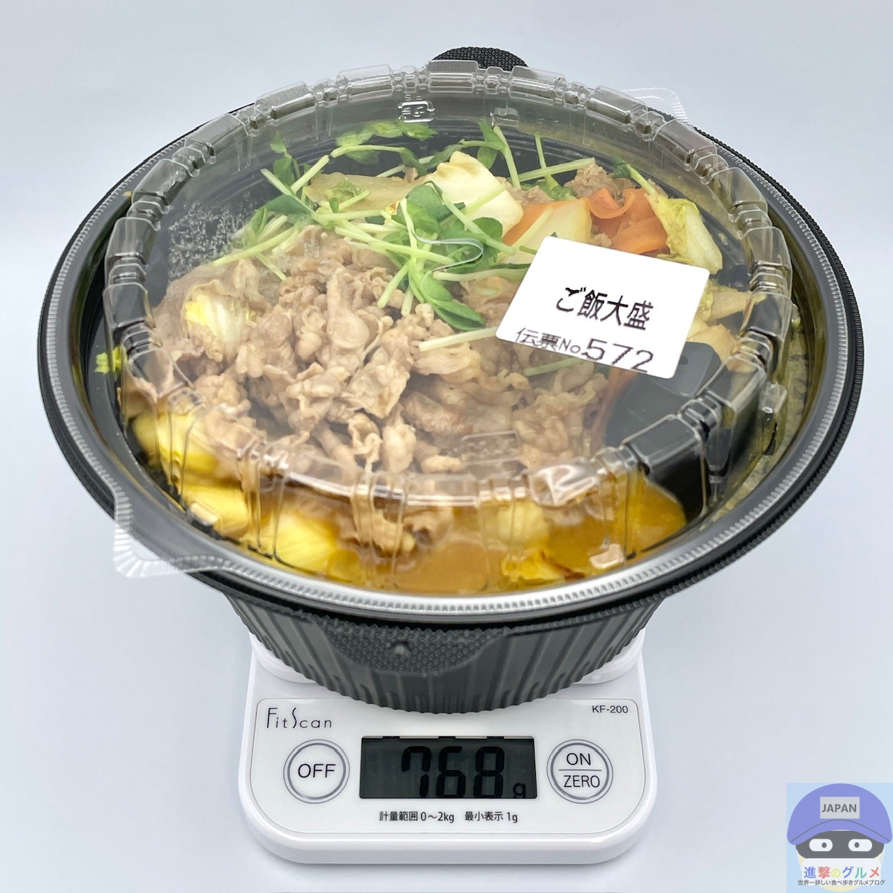 重さをはかると、容器を含めて768gでした。