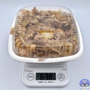 重さをはかると、容器を含めて638gでした。