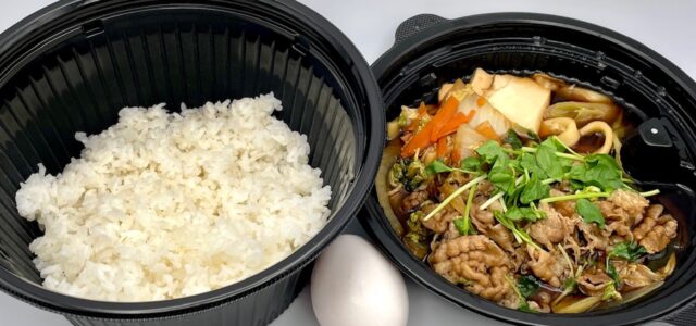 今回は、「牛すき鍋膳(883円)」、「ご飯増量(無料)」を注文してテイクアウトしました。