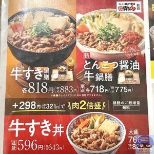 2025年10月17日より、「吉野家」が期間限定メニュー「牛すき鍋膳」「とんこつ醤油牛鍋膳」を販売開始しました。