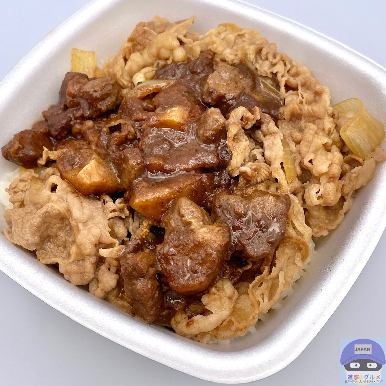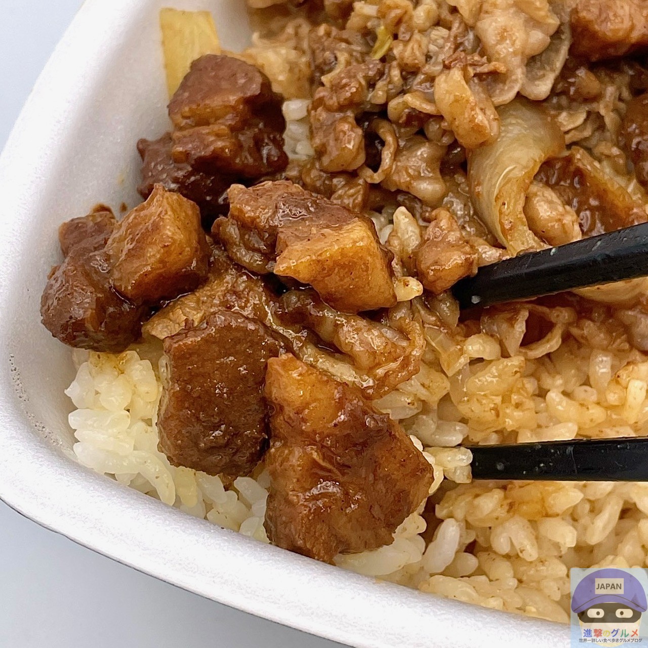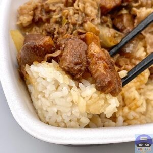 魯肉(ルーロー)は、ほろりと崩れる豚バラ肉が甘辛く、八角や五香粉の本格スパイスが香り、個人的に、牛丼と普通の相性で相乗効果はありません。
