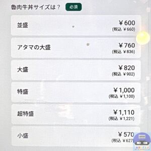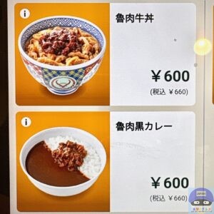 メニューは、「魯肉牛丼・並盛(660円)」、「魯肉黒カレー(660円)」があります。
